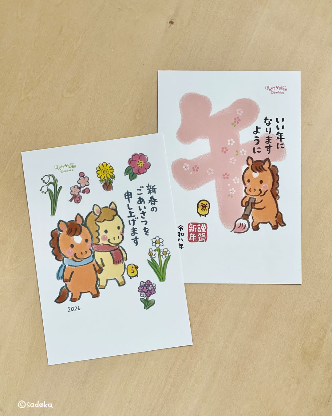 2026年午年 年賀状ギャラリー更新しました年賀状2025.11.10このホームページの年賀状ギャラリーページに、2026年午年の、ほんわか日和年賀状のデザインを追加しました。よろしかったらご覧ください。年賀状ギャラリー「ほんわか日和」の年賀状をご紹介。過去の年賀状もご覧ください。
