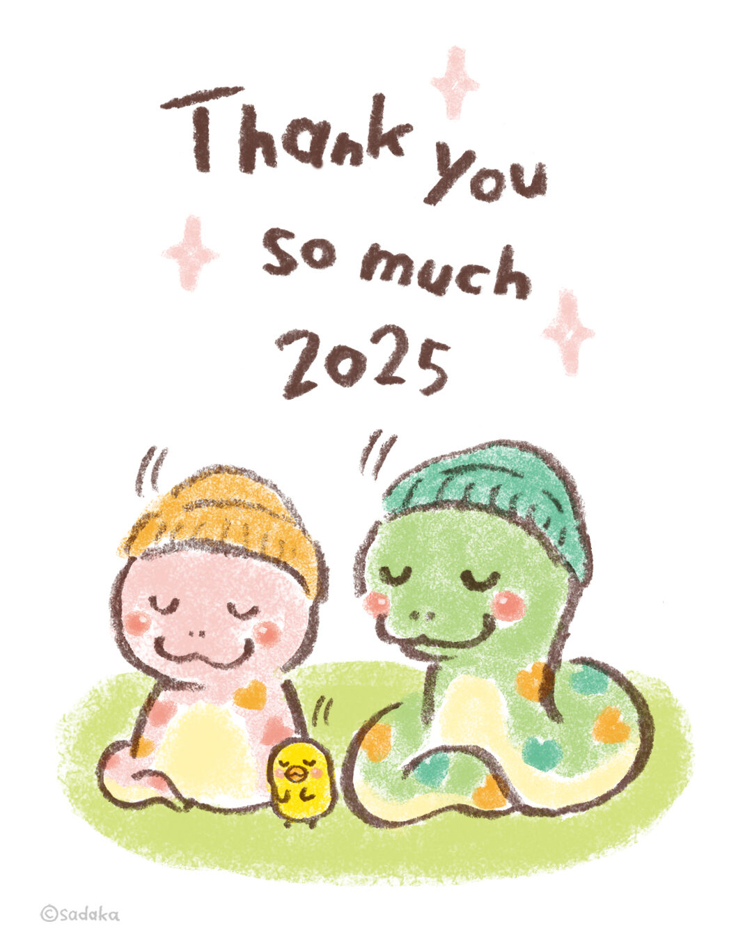 2025年もお世話になりましたごあいさつ2025.12.31ビーとミィは、ハート柄でご挨拶^^ほんわか日和に関わってくださった方、年賀状に選んでくださった方、ほんわかストアでお買い物をしてくださった方、ホームページやSNSを見てくださった方、ありがとうございました…!